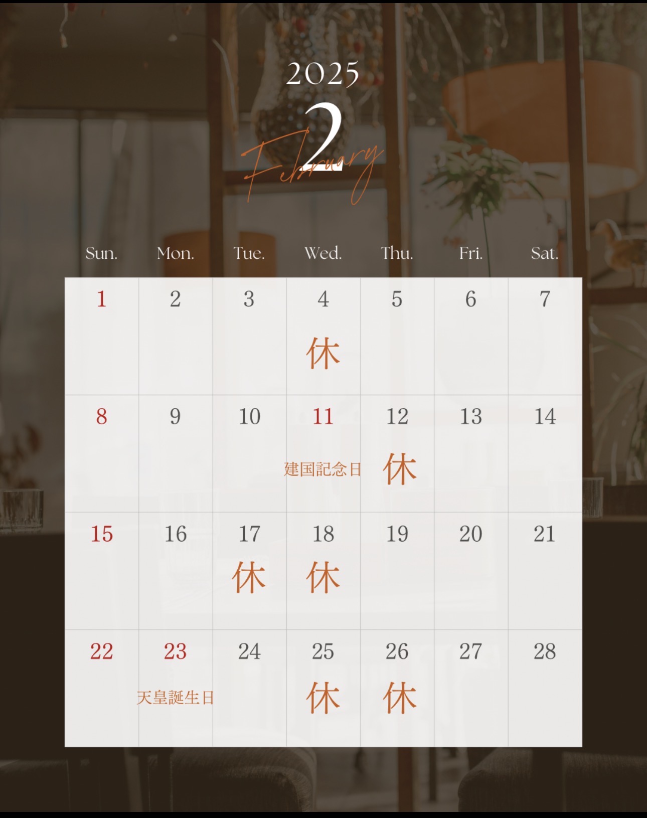 2025年12月28日(日)までの営業です。 2025年12月29日(月)から2026年1月4日(日)まで休業いたします。